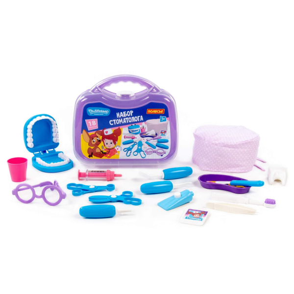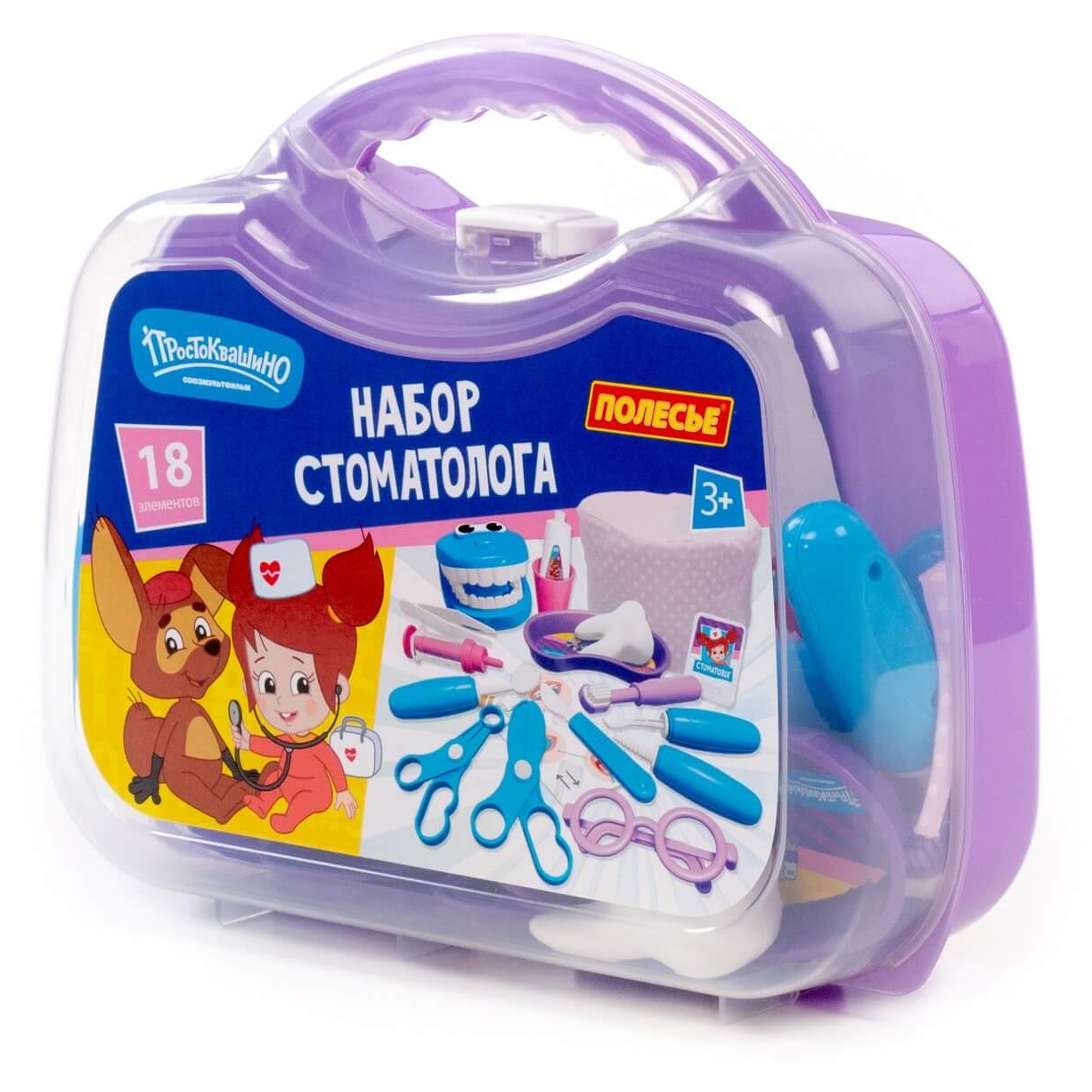 «Набор стоматолога» «Простоквашино» позволит организовать стоматологический кабинет дома! Все элементы набора помещены в удобный чемоданчик с ручкой. Он компактный, его всегда удобно брать с собой в гости, в путешествие Набор выполнен в яркой цветовой гамме, украшен наклейками с изображением персонажей известного мультсериала производства киностудии «Союзмультфильм» (герои новых серий мультфильма «Простоквашино»!).