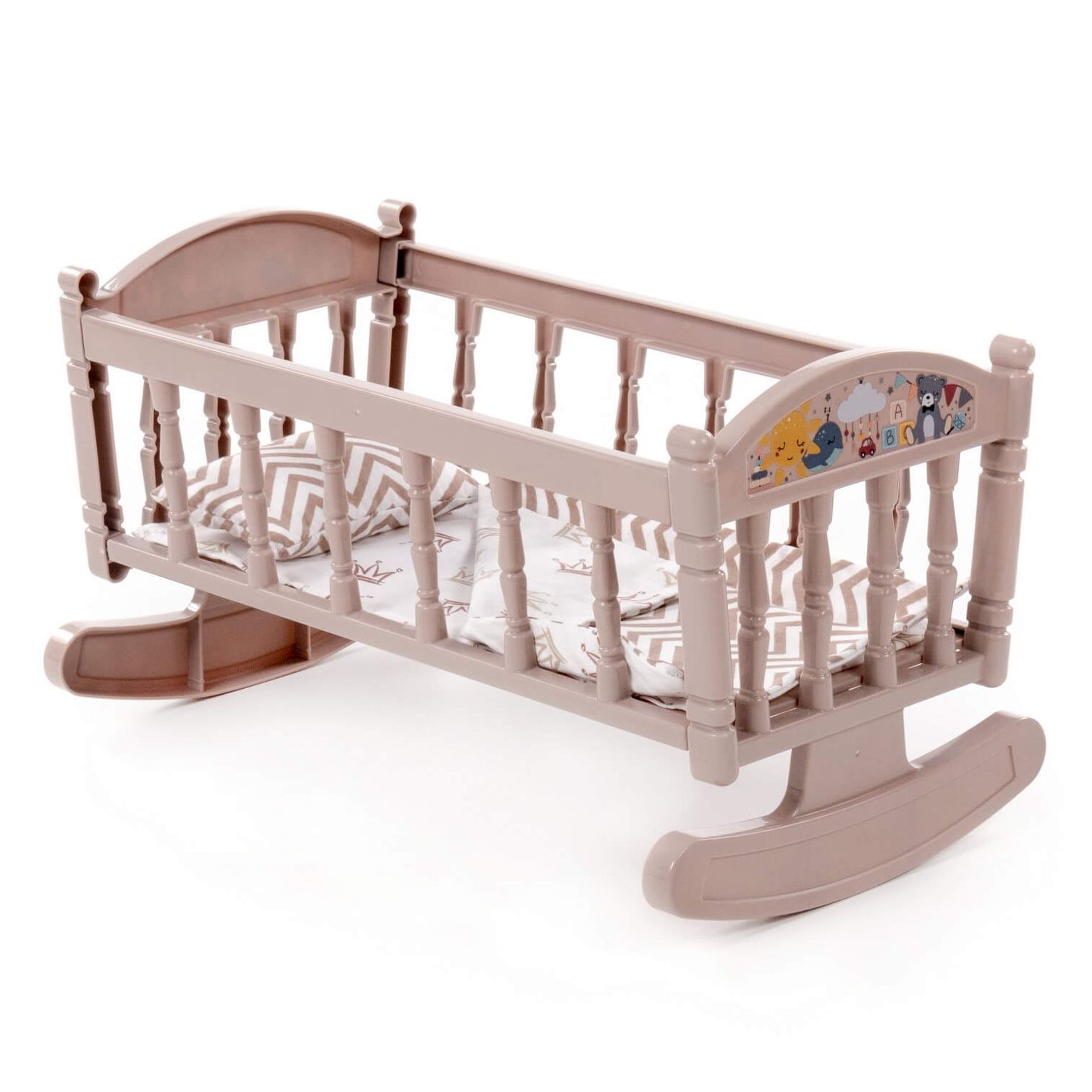 Кроватка-качалка для кукол ростом 34 см с подушкой, одеялкой и матрасиком (коричневая)