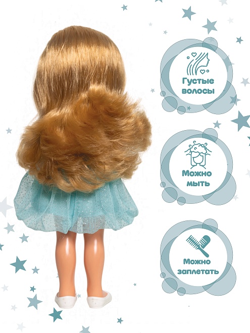 Рост куклы - 38 см. В положении лёжа закрываются глаза.