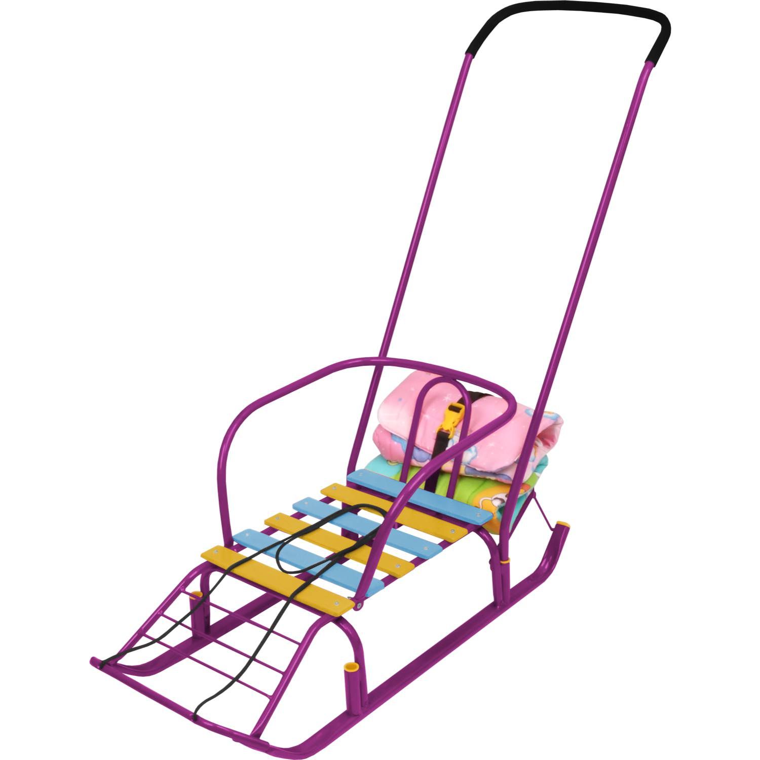 Санки Тимка 7 с багажником из прочного металлического профиля с плоскими полозьями, что лучше для их скольжения по снегу. Ручку можно переставить так, что бы везти ребенка перед собой или смотреть на него. Всегда есть необходимость что-то взять с собой на прогулку. Быть свободной от вещей Вам поможет небольшой багажник размером 22х24 см, который есть на санках Тимка 7. Так же у санок Тимка 7 с багажником поперечная рейка сидений, пластиковые вкладыши под толкатель, ступенчатая подножка, веревочка и ремень для крепления вещей в багажнике.